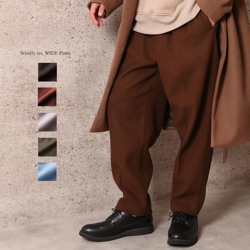 ウーリーテック ワイドパンツ メンズ 冬用 暖かい パンツ シェフパンツ テーパード ウール メルトン 大きい ゆったり ストリート 送料無料 店内全品対象